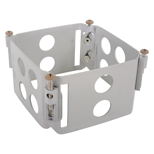 This square avionics clamp (EDMO# 1233232W2B) measures 3.175 x 3.175 inches, with a 2-inch mounting depth and constructed of light weight aluminum with an anodized finish.
