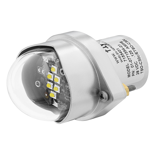 This 71554 series LED position light (EDMO# 7155402) is for vertical mounting, operates on 28 VDC, and has flying leads.
