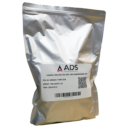 This ADS autopilot installation hardware kit (EDMO# 9225110022) facilitates the installation of the Garmin GFC500 into the Cessna 180/185/182 per drawing number 190-02291-22 in the installation manual.