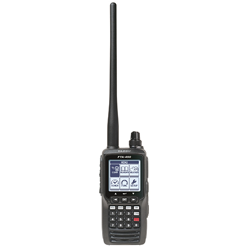 The FTA-450L is an affordable, compact communication airband transceiver. It features an advanced user interface made up of an over-sized 1.7 x 1.7 inch full dot-matrix display aiding users with intuitive operation. The loud 800 mW speaker output provides ample volume so that the radio is heard — even in noisy environments. This aviation radio stores 200 memory channels that can be recalled in just a few button presses. The FTA-450L comes with a high capacity Li-ion battery pack, 110VAC & 12VDC chargers, headset adapters, alkaline battery tray, belt clip, and USB programming cable.