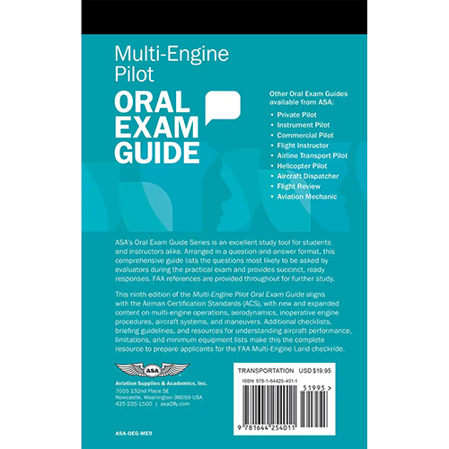This ninth edition of the Multi-Engine Pilot Oral Exam Guide aligns with the Airman Certification Standards (ACS), with new and expanded content on multi-engine operations, aerodynamics, inoperative engine procedures, aircraft systems, and maneuvers. Additional checklists, briefing guidelines, and resources for understanding aircraft performance, limitations, and minimum equipment lists make this the complete resource to prepare applicants for the FAA Multi-Engine Land checkride.