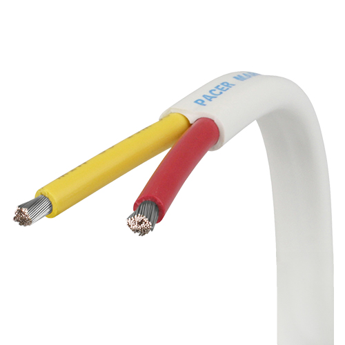 Duplex Boat Cable is a type of multiconductor cable that is used in low-voltage AC applications and DC circuits. Pacer manufactures 14 AWG Duplex boat cable in-house in Sarasota FL, USA for the highest quality. It starts with finely stranded, Type III tinned copper conductors. These allow for maximum flexibility and prevention of corrosion.