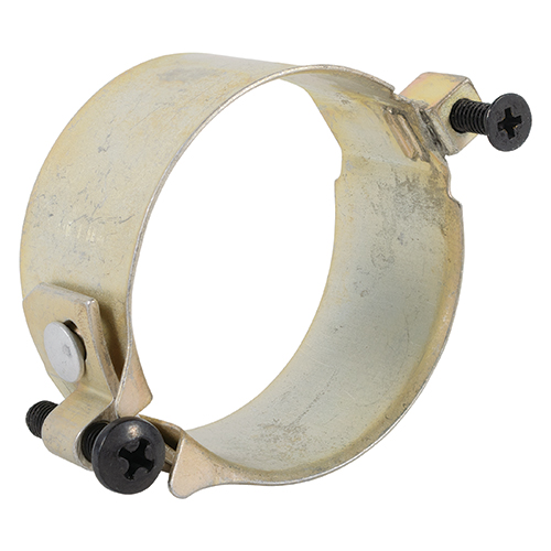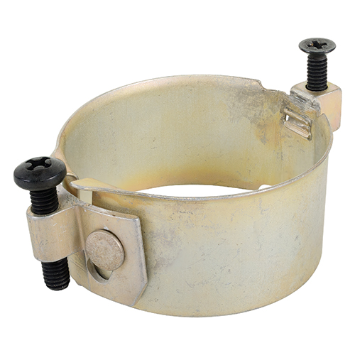 This avionics shelf clamp (EDMO# 64613) measures 2 inch diameter, with a 1-inch mounting depth and constructed of light weight aluminum with a yellow chem-film (Alodine) finish.