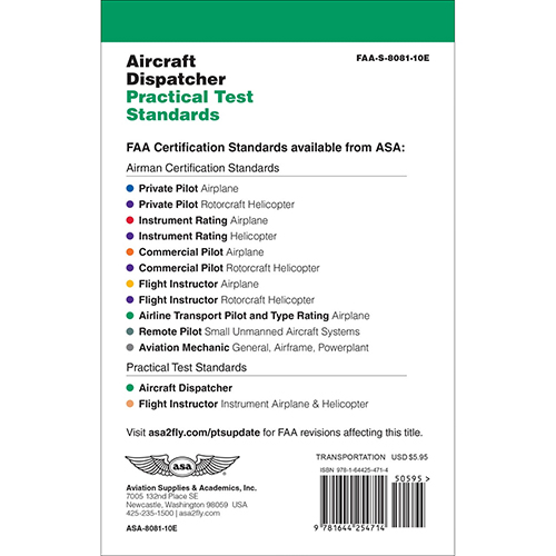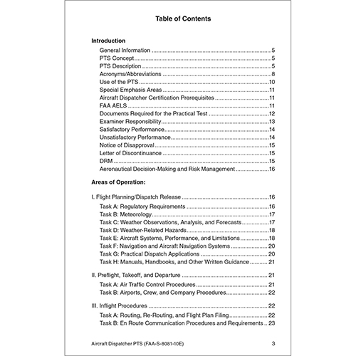 This Federal Aviation Administration (FAA) Aircraft Dispatcher Practical Test Standards (8081-10E) supersedes the previous edition (8081-5F.7), and is the guide for students, instructors, and evaluators to understand what applicants must do to pass their FAA Knowledge Exam and practical test to earn their aircraft dispatcher certificate.
