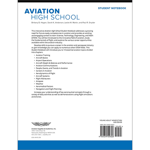This interactive Aviation High School Student Notebook and Aviation High School Facilitator Guide address a growing need for future-ready competencies in aviation and provides an exciting and engaging context to learn Science, Technology, Engineering, and Math (STEM). Students will be introduced to the innovative field of aviation, study the fundamentals of flight, and explore the various career opportunities available within the aviation industry.