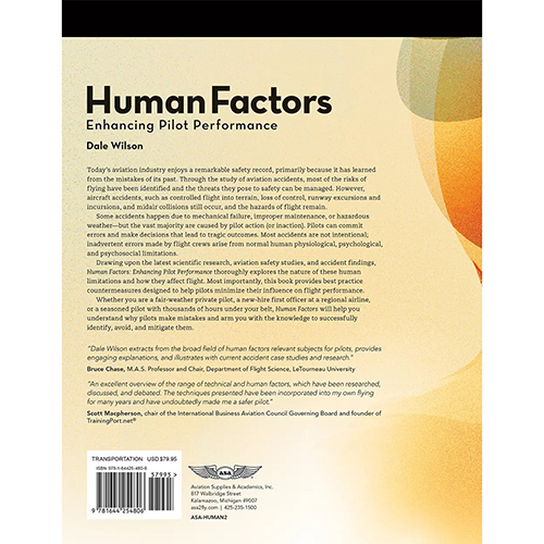 Whether you are a fair-weather private pilot, a new-hire first officer at a regional airline, or a seasoned pilot with thousands of hours under your belt, Human Factors will help you understand why pilots make mistakes and arm you with the knowledge to successfully identify, avoid, and mitigate them.