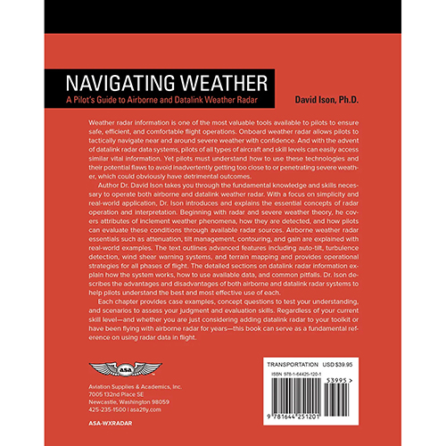 Author Dr. David Ison takes you through the fundamental knowledge and skills necessary to operate both airborne and datalink weather radar. With a focus on simplicity and real-world application, Dr. Ison introduces and explains the essential concepts of radar operation and interpretation. Beginning with radar and severe weather theory, he covers attributes of inclement weather phenomena, how they are detected, and how pilots can evaluate these conditions through available radar sources. Airborne weather radar essentials such as attenuation, tilt management, contouring, and gain are explained with real-world examples. The text outlines advanced features including auto-tilt, turbulence detection, wind shear warning systems, and terrain mapping and provides operational strategies for all phases of flight. The detailed sections on datalink radar information explain how the system works, how to use available data, and common pitfalls. Dr. Ison describes the advantages and disadvantages of both airborne and datalink radar systems to help pilots understand the best and most effective use of each.
